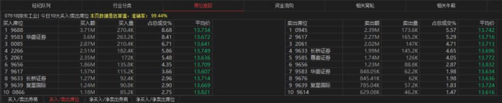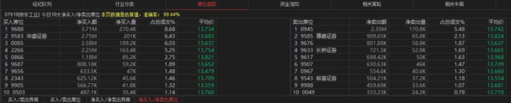 京东工业(07618.HK) 买盘席位有9688、9583、0085、2266等,卖盘第一席位是0945。